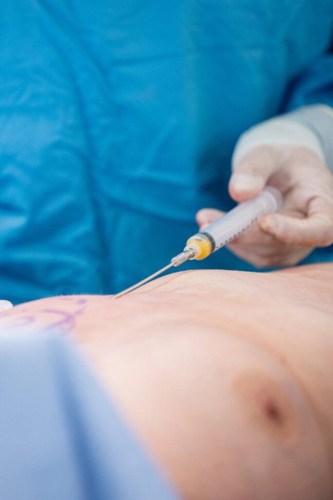 Fat transfer to the breasts (also called lipofilling) involves gentle liposuction from areas such as the abdomen, flanks or thighs. The fat is processed and carefully injected into the breast in tiny micro-parcels to improve shape and add soft, natural-feeling volume. Because it’s your own tissue, there’s no foreign material to maintain, and results tend to feel particularly natural.